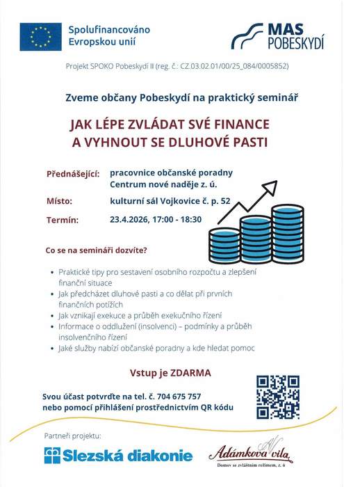 Úvod > O obci > Aktuality > MAS Pobeskydí informuje - seminář Jak lépe zvládat své finance a vyhnout se dluhové pasti