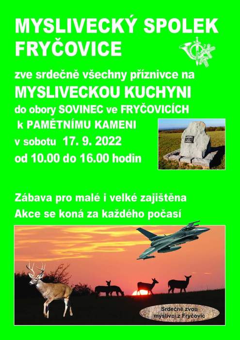 Úvod > O obci > Aktuality > Myslivecký spolek Fryčovice zve - 17.09.2022 do obory Sovinec