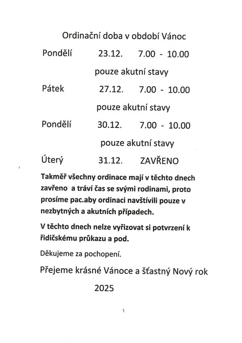 Úvod > O obci > Aktuality > Ordinační doba zdravotního střediska Fryčovice v době Vánoc