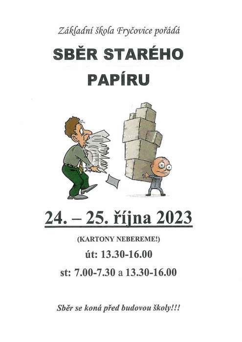 Úvod > O obci > Aktuality > Sběr starého papíru 24. - 25. října 2023