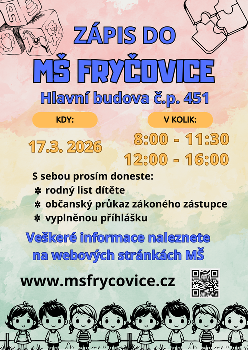 Úvod > O obci > Aktuality > Zápis do Mateřské školy Fryčovice